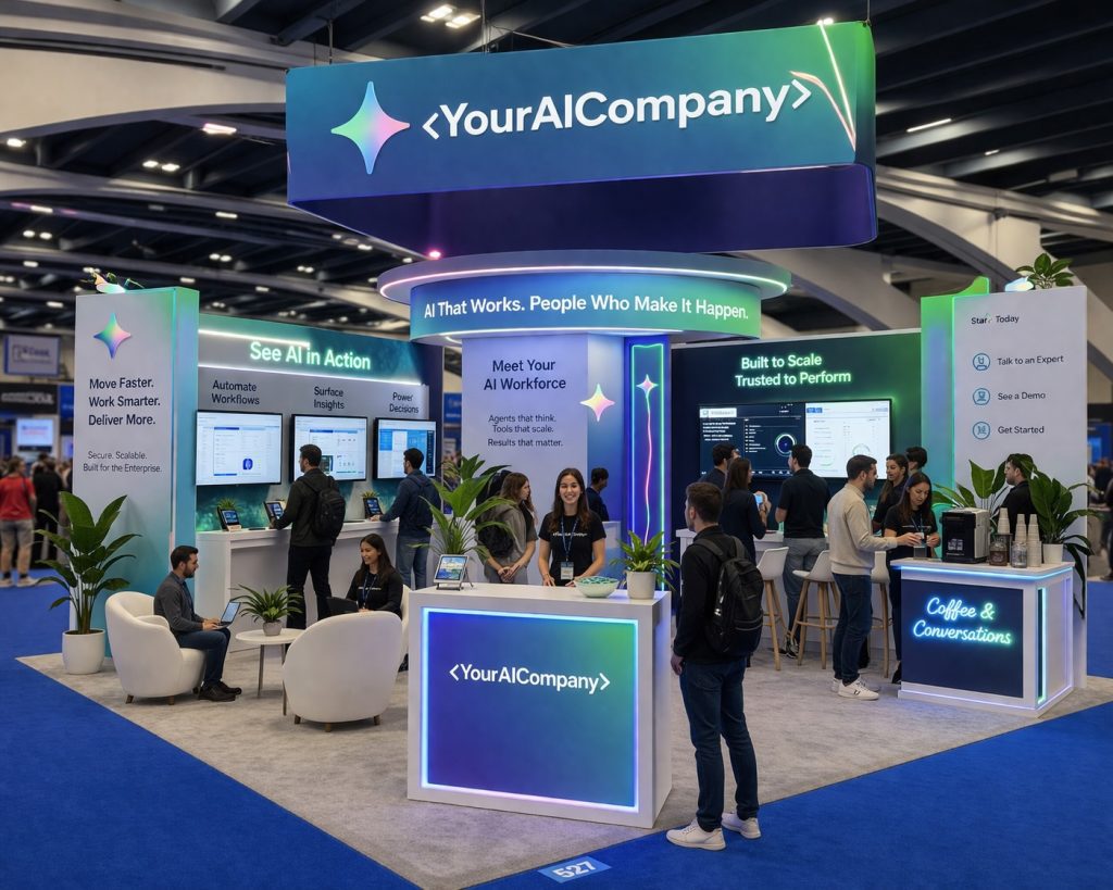 The placeholder brand name on the booth was, and I am not making this up: “YourAICompany.”