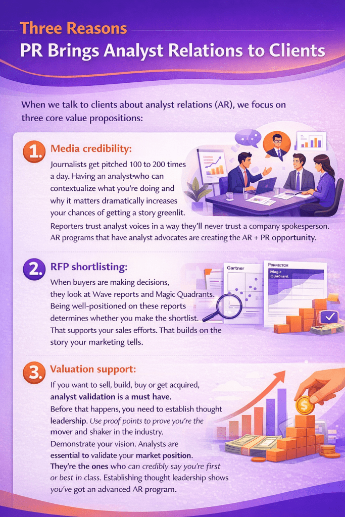 Companies that understand this invest in AR as a strategic function, not just a PR tactic. They’re engaging early to build relationships, sharing ideas to build thought leadership and defining clear objectives to leverage more of what analyst firms offer.